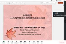 邀请了加拿大北极光氢能源公司邱国佺高级研究员分别在化工系会议室和腾讯会议给化工系本科生和研究生进行了不同主题的专题讲座。