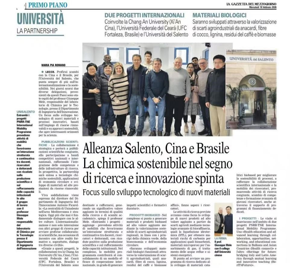 图2 意大利《La Gazzetta del Mezzogiorno (南方公报)》报道长安大学与萨兰托大学合作情况