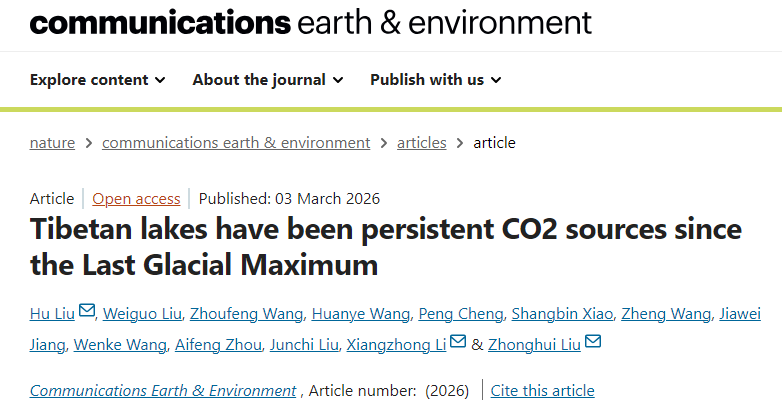 博彩(中国)官方网站 刘虎副教授在Nature旗下期刊《Communications Earth & Environment》发表湖泊水生植物碳同位素及其应用于青藏高原末次冰盛期以来湖泊CO2碳源/汇重建的研究成果