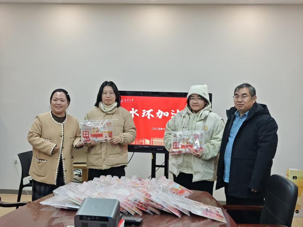 为助力考研学子全力冲刺、圆梦考场,学院精心筹备的"考研加油包"满载温情。礼包中包含学院领导班子、系室主任、教工党支部书记、辅导员及学弟学妹们亲手书写的祝福贺卡;“天道酬勤”励志书签,以隽永文字时刻勉励追梦人;甜蜜糖果,将“金榜题名”的美好祝福融进舌尖;舒缓眼贴,为疲惫的眼眸送上片刻放松;还有刻着“前程似锦”字样的定制钥匙扣,寓意开启通往理想学府的大门。从精神慰藉到实用助力,这份礼包全方位为考研学子保驾护航。