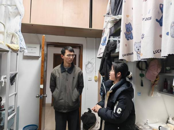 刘扬与辅导员带着新年的祝福与问候,逐一走访了所负责年级的学生宿舍。走访过程中,辅导员们细致查看了宿舍的卫生与安全状况,关切询问同学们寒假期间的生活见闻、社会实践经历、家庭情况以及返校后的适应状态。他们特别叮嘱同学们要注意初春时节天气变化,合理安排作息,保持宿舍环境整洁,注意用电与财产安全,以饱满的精神和健康的体魄迎接新学期的挑战。